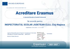 Click pentru a vizualiza informații despre Proiectul ERASMUS+ 2023-1-RO01-KA121-VET-000140746, desfășurat în consorțiu cu Inspectoratul Școlar Județean Cluj.